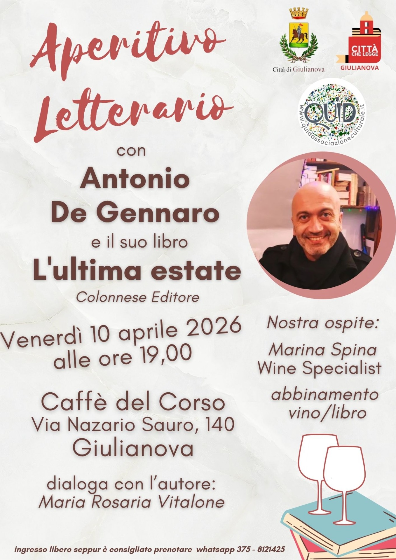 Vi aspettiamo venerdì 10 aprile alle ore 19,00 al Caffè del Corso (Via Nazario Sauro, 140) di Giulianova.