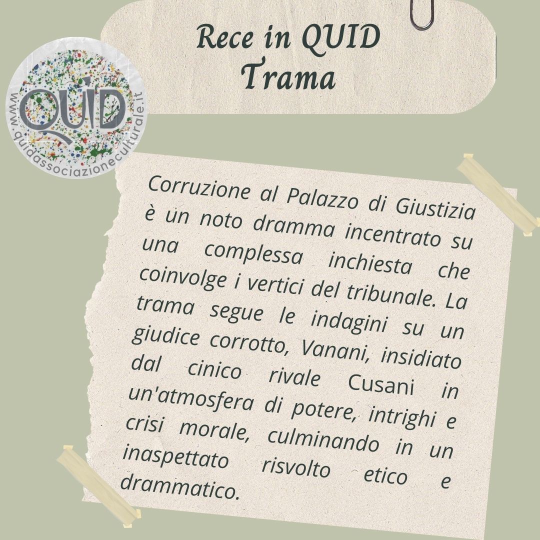 Curiosità: Ugo Betti fu magistrato oltre che scrittore, e questa doppia esperienza emerge con forza nel testo. Corruzione al Palazzo di Giustizia debuttò a teatro nel 1949 e suscitò grande clamore proprio per il suo sguardo critico sulle istituzioni giudiziarie. L’opera vinse il Premio Viareggio e contribuì a consolidare la fama di Betti come uno dei più importanti drammaturghi italiani del Novecento, capace di unire riflessione morale e tensione teatrale.