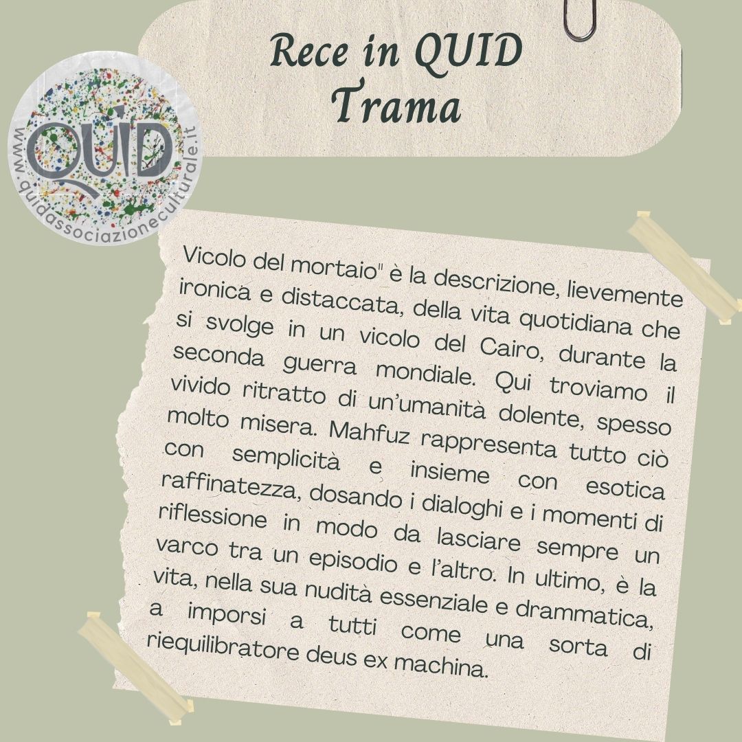 Curiosità: Naguib Mahfuz, premio Nobel per la Letteratura nel 1988, è considerato uno dei più grandi narratori del mondo arabo. Vicolo del mortaio è una delle sue opere più rappresentative e ha avuto anche un adattamento cinematografico nel 1995 con il titolo Nel cuore della città, diretto da Jorge Fons e con protagonista Salma Hayek,